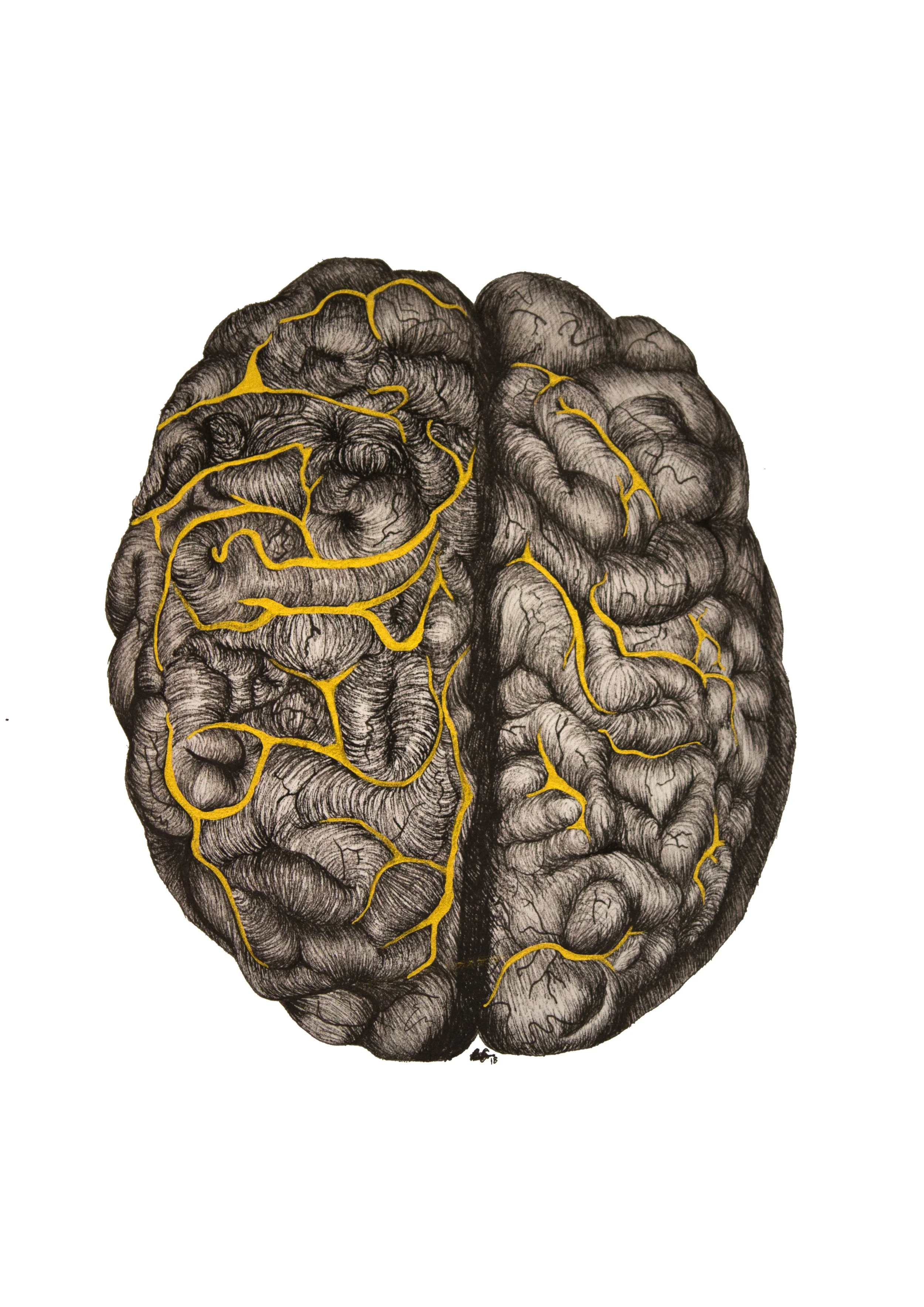 ‘Golden Brain’ Ink on Paper. Displayed at Sanctuary Medical Practice.